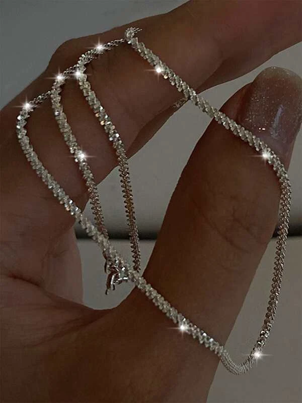 Colar prata em camadas Decoração de strass